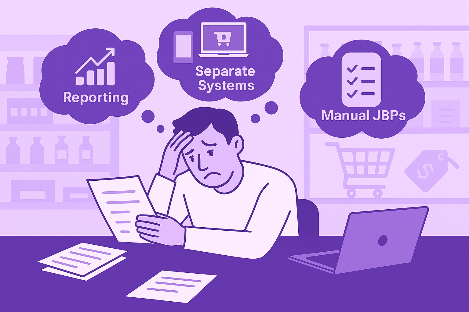 Spreadsheets everywhere: JBPs and planning handled manually, eating hours each week.